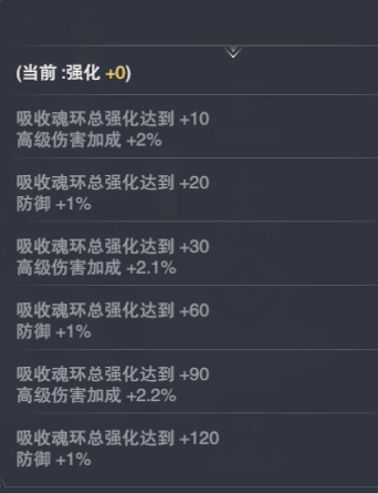 值得一提的是,当魂师佩戴的魂环总强化达到一定层数时,将会提升一定的【高级伤害】、【防御】。