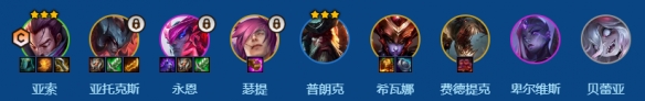 2、6级慢D给亚索上3星,然后升8拿剑魔瑟提,给永恩上2星后存钱升9提升阵容上限。