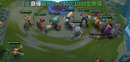 为斗士提供额外生命值(斗士获得额外250/400/1000生命值)