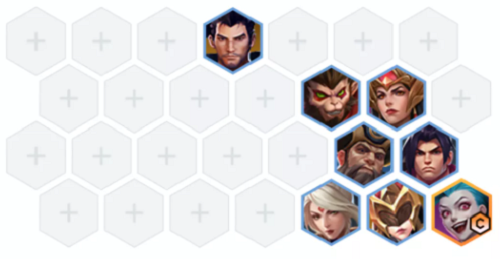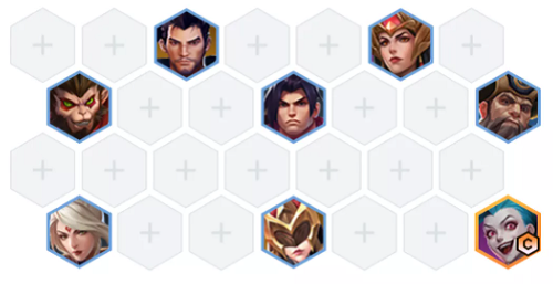 前期阵容成型,3-3前不上人口,金克斯装备给驱邪圣枪打工。D出三星不屈战神并且有一两件成装后速速升8找金克斯、猴子、曙光;搜不到疾风剑豪用御守。