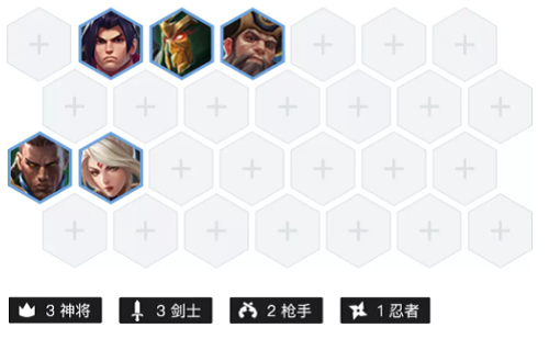 3神将2枪3剑,前期优先搜不屈战神的装备,这套阵容前期连胜吃来,最好在3-3之前都不要升人口,优先D到三星不屈战神华剑战姬。