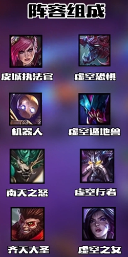 皮城执法官、虚空恐惧、机器人、虚空遁地兽、南天之怒、虚空行者、齐天大圣、虚空之女