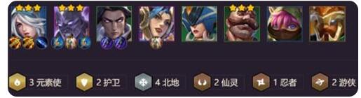 四北地开局有几率的冻结对面英雄,三元素召唤一个魔像前排抗伤害,二游侠和焰魂有效在后面进行输出,能打能抗,非常不错的阵容。