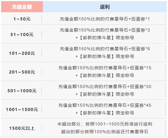 本次为删档付费测试,玩家在测试期间充值的所有金额,将在公测开启后按照以下规则进行返还。