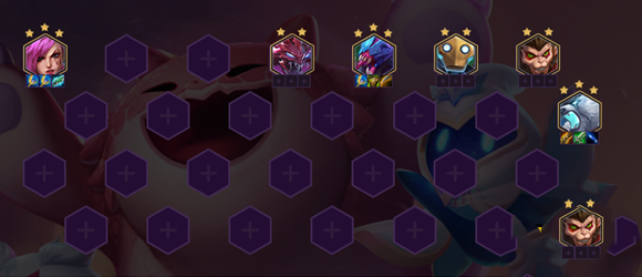 3阶段:通常在3-2升级6人口,如果这时候有6斗可上6斗士,强度不错就算掉血,也不会被满入;如果斗士棋子2星较多4斗士也可上场,可挂2游侠或2枪手打工;其他情况尽量继续用打工阵容过度,不上斗士。我们要的就是稳血。