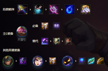 主C天雷引(凯南):装备给上守护天使(复活甲)法转,最后一件给上兹若特传送门或石像鬼的板甲,泰坦的坚决都可以