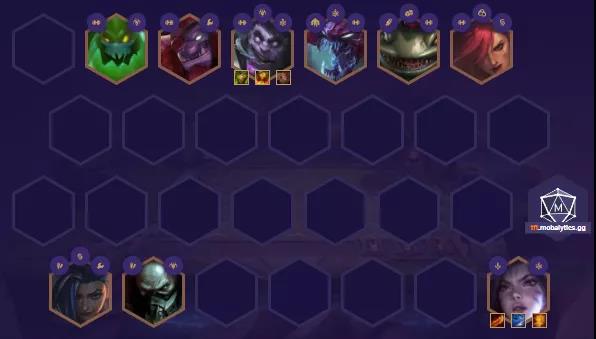 1-4海克斯选择:优先推荐拿格斗或炼金的转职,这样后期也可转炼金维克托或炼金双枪;第二拿前线假人前期可打极致连胜,或者日炎棋盘、成装等对前期很有利的增益,5费卡主C阵容的思路就是要稳血上9一波启动。