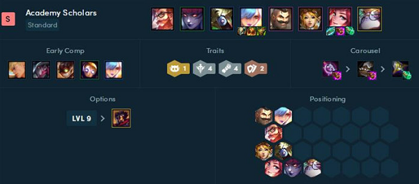 2、阵容羁绊:4战斗学院4学者2保镖1猫猫