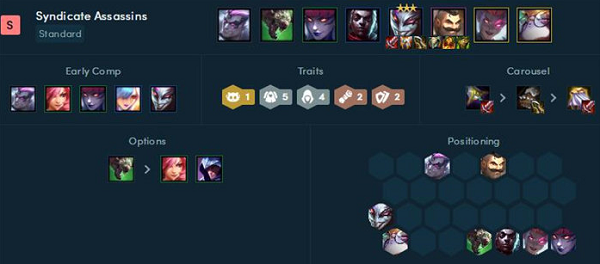 2、阵容羁绊:2猫猫5辛迪加4刺客2学者2保镖