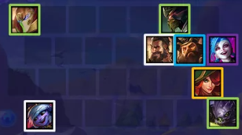 8人口:虚空行者(卡萨丁)、德玛西亚之力(盖伦)、凯特琳(女警)、格雷福斯(男枪)、深渊巨口 克格莫、卡莎、蒙多、马尔扎哈
