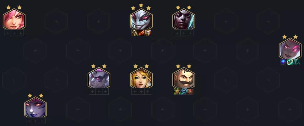 选择一个合适的过渡阵容基本上就赢了一半了。早期可以选择图奇、卡特、波比、诺手4人口的阵容来过渡。这样可以凑出2刺客2保镖的羁绊。作为1费卡的图奇早期还可以考虑去带小丑的装备打工,等6人口左右来小丑了就可以丢萨科进行替换,这样整体阵容的实用性也会提升很多。基本带装备的刺客早期打工很容易吃连胜。