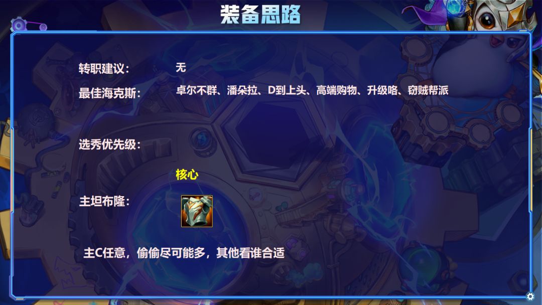 其他搭配最好的就是潘朵拉,可以全员偷偷,剩下的就是速冲人口类的海克斯最佳。