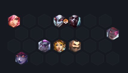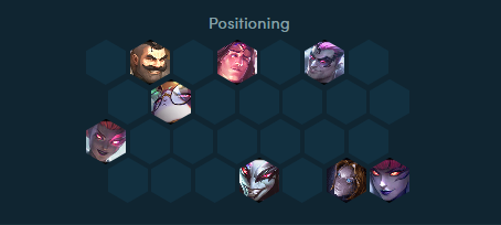 5、站位图:让作为主C的小丑在前排开局就跳跃到对手后排,而其他的刺客和辛迪加英雄们在中排或者后排慢慢走上去拉开空间。