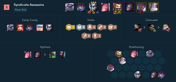 2、阵容羁绊:5辛迪加4刺客2极客2保镖2学者