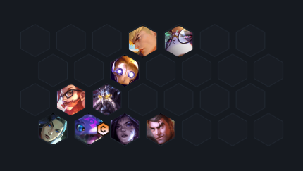 1、阵容成员:盖伦+大嘴+悠米+杰斯+卡莎+男枪+卡萨丁+凯特琳+机器人
