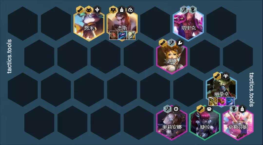 阵容羁绊:6极客2姐妹2格斗2执法1未来
