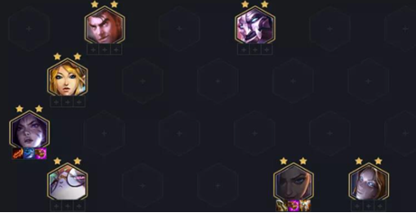 从阵容、羁绊构成来看,由于有巨像英雄的存在这个阵容7张卡就可以成型(在8人口的情况),但是玩九五的体系,上9是非常关键的。上了9人口以后,尽量补一张额外的巨像牌去凑2巨像(赛恩最佳),然后阵容主要D出全场的2星5费卡,这样纯靠质量很容易吃鸡。
