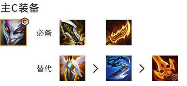 3、其次就是装备了,小丑需要无尽+羊刀+巨杀这三件装备,前排的布隆最好是反甲+龙牙+狂徒的组合;