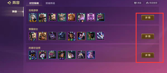 3、选择好版本之后,点击阵容右侧的【详情】,就可以进入阵容的详细界面;