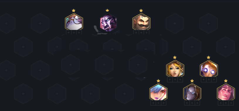 前期不搜牌,根据来牌补充羁绊过渡,4-1上7搜一波,保证4保镖加发条和白魔,质量不太低就可以上8,找加里奥猫咪,整体质量够了之后考虑追三星发条或者上9。