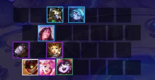 2-5上5人口,精致约德尔5连败其实最佳,一胜一负也不用在意,最好调整成胜胜负负,挂个约德尔就成,阵容节奏快中期锁血强就不怕,按照鬼书、科技枪、大天使的顺序做装备,前排优先反甲然后狂徒。