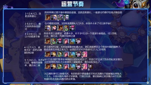 阵容前期过渡不强势,大后期不强势,但就是吃分那整个阶段克制所有热门阵容,中期曾经恶心你的刺客和永恩看见你就想哭,不天胡8挑战或者6挑战大成都没法打,刺客、巨魔更是完克,法师没有龙牙瞬秒,属于吃分很稳大后期不胡三星就给鸡的套路。