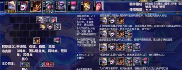 3.卡牌的扑克牌满天飞,来白魔转直接挂即可,团队收益,最后来黑魔法转职可以给璐璐或者诺手,然后8人口去掉宝石开4黑魔,也是团队收益,比较好用,如果没有转职,8人口最终成型。