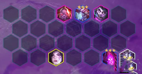 4-5或5-1升级8人口,开始大搜卡找到蒙多卡莎阵容成型,之后就是去追大虫子三星,顺带可追玛尔扎哈三星,如果虫子三星早更是可以升级9人口挂悠米或维克托,维克托主要是增加伤害,需要2星与装备支持,而悠米稳定控制1星的强度非常高,大家对局看情况选择。