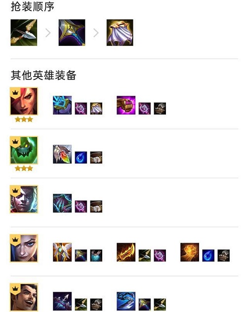 ①开局选秀抢攻速或者大剑,优先合成分裂弓和饮血剑这两件装备。魔抗不用拿,没人抢,后面选秀很容易拿到。