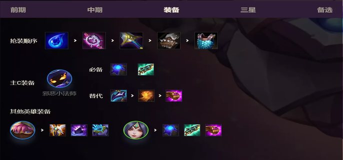 2-5回合4人口无畏重炮、海上幽影、命运之手、虚空重炮,补一个两枪羁绊,这样对面入我们血入得不多,既保住了血量,又保住了经济。海上幽影依旧用青丘灵狐或者小法师的装备,把天雷引的装备给无畏重炮打工。