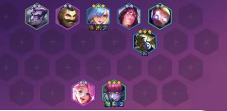 阵容组成:诺克萨斯之手 德莱厄斯、蒸汽机器人 布里茨、荆棘之兴 婕拉(阵容主C)、瓦洛兰之盾 塔里克、曙光女神 蕾欧娜、冰霜女巫 丽桑卓、星籁歌姬 萨勒芬妮、弗雷尔卓德之心 布隆