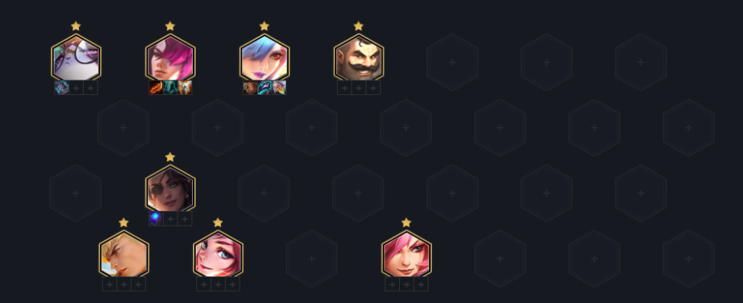 开局选秀直接拿暴击拳套,短弓开局2-1上4人口,2-5上五人口,组成2极客3约德尔2保镖2圣盾,前期的话优先做永恩的装备,给小炮打工过度,尽可能打连胜升人口,尽早上8人口找到永恩完成阵容成型。