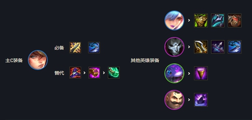 2、女枪装备为核心,前排女坦,烬作为副C拣装备即可,做一个虫洞给布隆。