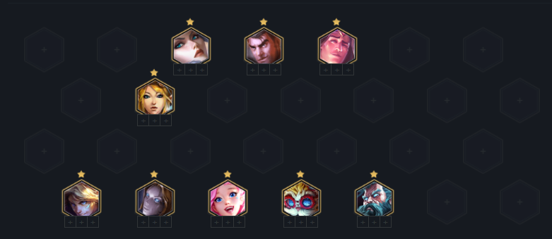 奥莉安娜、迦娜、伊泽瑞尔、黑默丁格、萨勒芬妮、杰斯、基兰、塔里克、菲奥娜