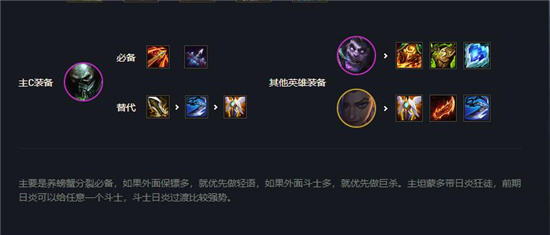 2、副C装备选择:必选狂徒、日炎、冰心、羊刀、巨人杀手、复活甲