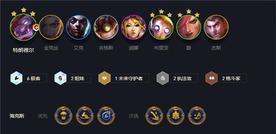 2、羁绊搭配:6极客+2姐妹+2格斗家+2执法官+1未来守护者