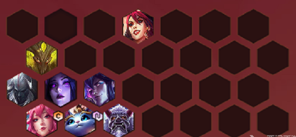 前期可以先用腥红之月打工渡过,装备优先给狐狸凑齐,珠光护手的优先度是最高的,然后是复活甲,之后无尽或者法师帽都可以,其余的肉装都给到猪妹即可,猪妹在第一排吸收对方的伤害并且打出控制,阿狸站在输出位的位置,猫咪携带圣杯在阿狸旁边辅助,该阵容的英雄都是比较偏高费的,到8人口的时候开始刷牌是最好的。