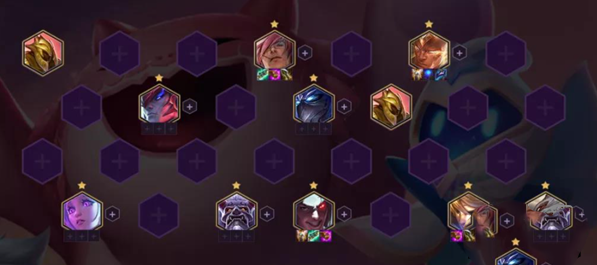 2-1回合不拉人口,3人口三福星直接吃连败,塔姆天选、安妮,如果没有塔姆天选也可以塔姆+安妮+金克斯或者卡特琳娜来凑三福星。