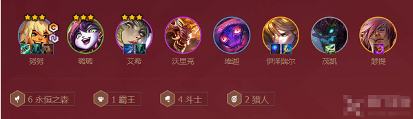 阵容英雄:努努、璐璐、艾希、狼人、小法、ez、树精、瑟提