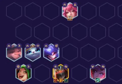 如果开局小兵出攻速有火炮就可以选择猩红起手,低人口时多一只加里奥压制力很充足,等寡妇来也好凑夜影羁绊。
