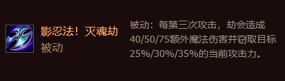 [夜影]们每攻击3次就会,进入潜行状态并且使其下次普通攻击造成额外魔法伤害。