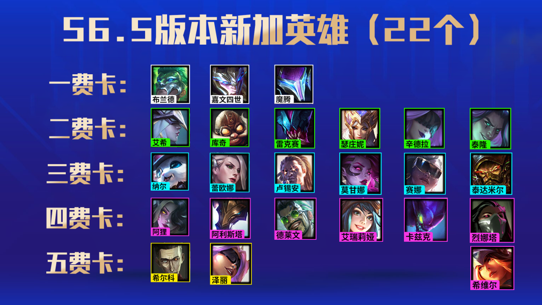 金铲铲之战即将更新S6.5版本,很多小伙伴都很想知道新版本都增加了什么英雄,今天小编给大家带来了《金铲铲之战》S6.5新增英雄一览。感兴趣的小伙伴一起来看看吧,希望可以帮助到大家。