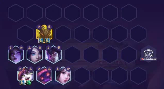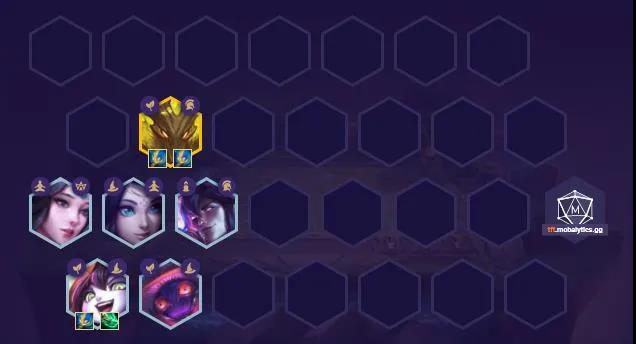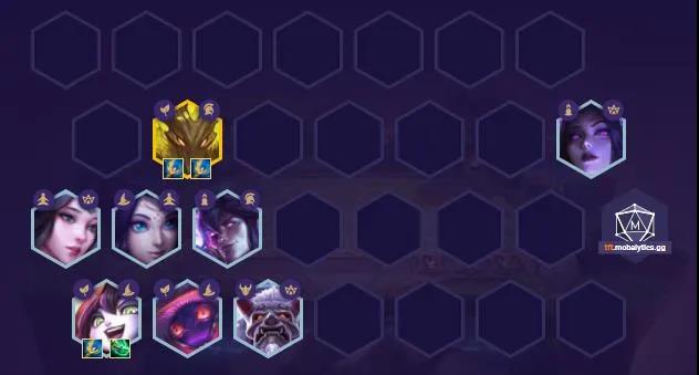 根据中期天选选择后期变阵;如果是重装人马后期上八上一个剑魔四重装;森林天选的璐璐或人马就不上小法,换成狐狸或狍子,换狐狸可以蛇女换猫双明昼,换狍子上八补锐雯组四夜幽;任意法师天选也是下小法,暂时补莫甘娜,后期上八补伊泽。变阵非常多也非常灵活,核心思路就是不管谁天选,能下小法就下小法凑其他羁绊。