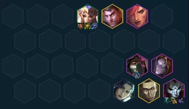3-2拉6正常开3辛迪,也可以上赛娜开名流打工。4-1拉7大D保底出1张烬和1张蔚,来了开核心羁绊2执法2狙神2精密,站位要随时换,感觉要打刺客了把前排沉底做保护。