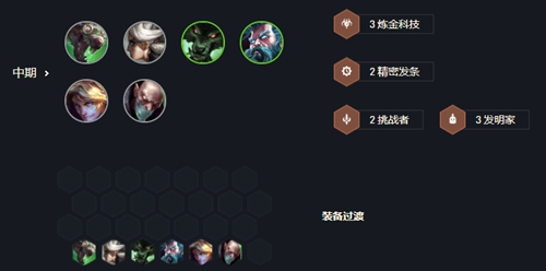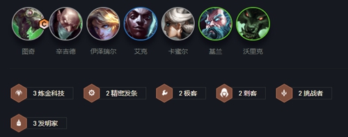3炼金科技、2精密发条、2极客、2刺客、2挑战者、3发明家