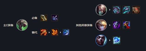 老鼠主C,必备装备无尽、轻语,可用死亡之刃、巨杀代替分裂箭。