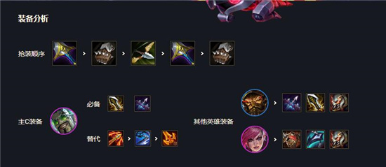 2、副C装备选择:必选轻语、无尽之刃、泰坦的坚决、反甲、龙牙