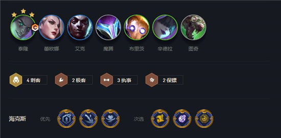 2、羁绊搭配:4刺客+2极客+3执事+2保镖