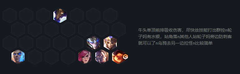 阵容打前中期,海克斯羁绊配合电刀容易连胜、吃分能力强,克制爆发伤害低的阵容,但比较被大成发明家等95阵容克制