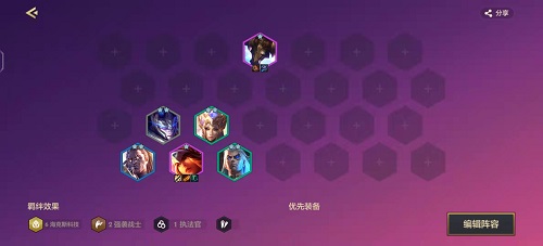 2、羁绊组成:6海克斯科技 2强袭战士 2格斗 2执法 1宿敌